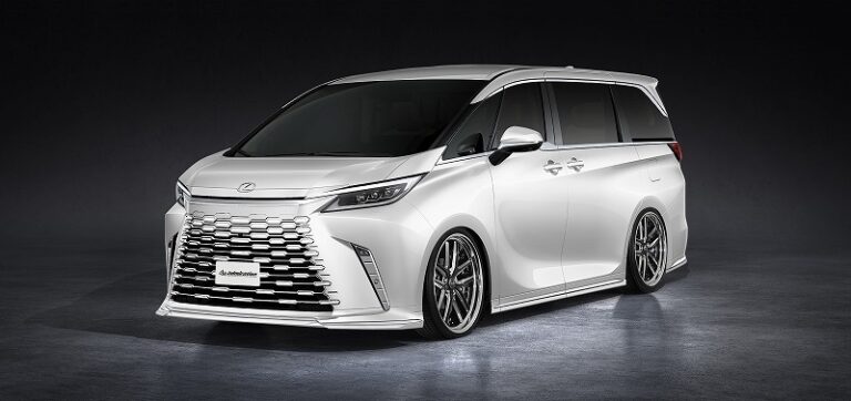 LMの持つ美と高級感を最大限に引き出す、造形美を追求したエアロパーツを予定しております。この新作エアロとAmistadホイールを装着した「レクサスLM」のデビューにご期待ください。